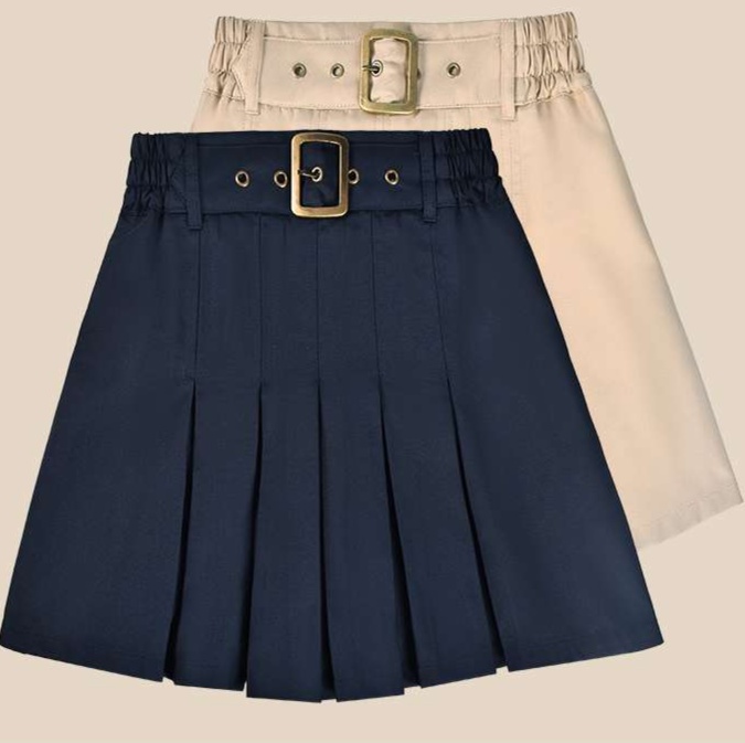 細かなプリーツデザインと、ウエストの太めのベルトがアクセントとなっています。