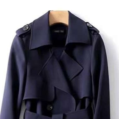 ネイビーコーデの定番となるクラシカルな魅力とモダンなデザインを兼ね備えたネイビートレンチコート。