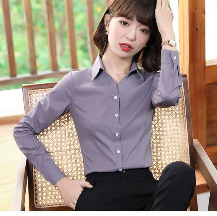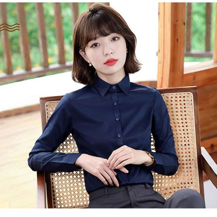 清潔感のある襟元のデザインで、知的で上品な印象を演出します。