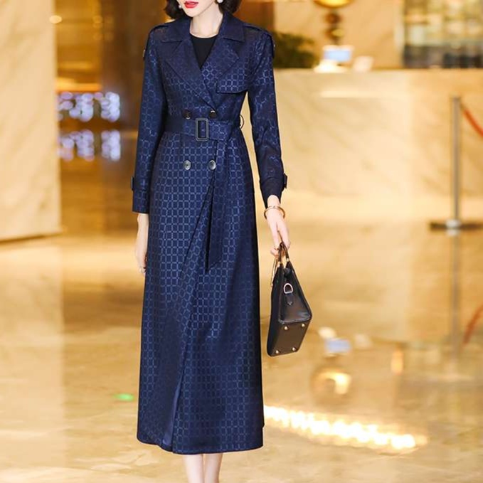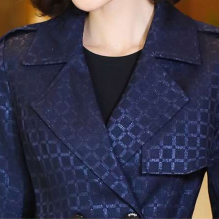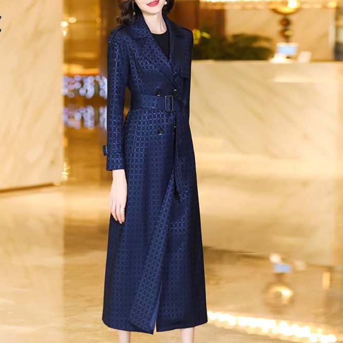 ロング丈とダブルボタンのデザインが、クラシカルで知的な印象を与え、フォーマルなシーンにも対応できます。